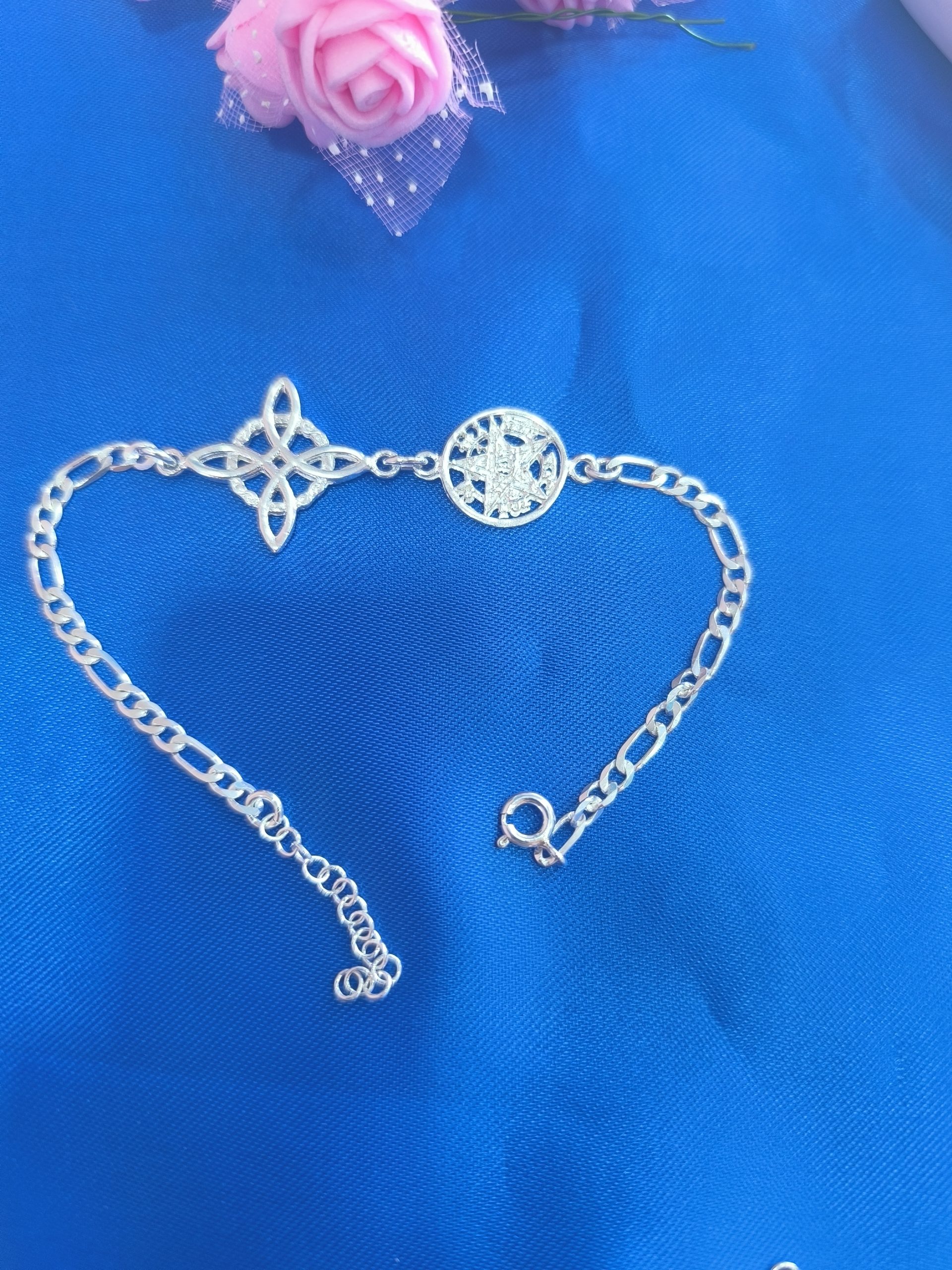 Descubre nuestra pulsera de Plata con un diseño elegante y sofisticado que combina moda y simbolismo. Sus dijes , el Nudo de Bruja y el Tetragrámaton , aportan un toque único a esta joya , perfecta para quienes buscan un accesorio especial y con personalidad.
